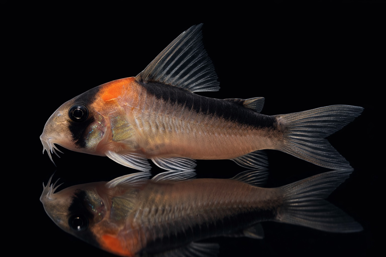 Corydoras adolfoi oder Adolfos Panzerwels ist ein hübscher kleiner Panzerwels aus Brasilien, Südamerika. Sehr markant ist sein leuchtend-oranger Fleck auf dem Kopf, der sich gut von der restlichen weiß-schwarzen Körperfärbung abhebt. Typisch für ihn ist auch die schwarze Augenbinde. Er wird bis zu 5 cm groß.