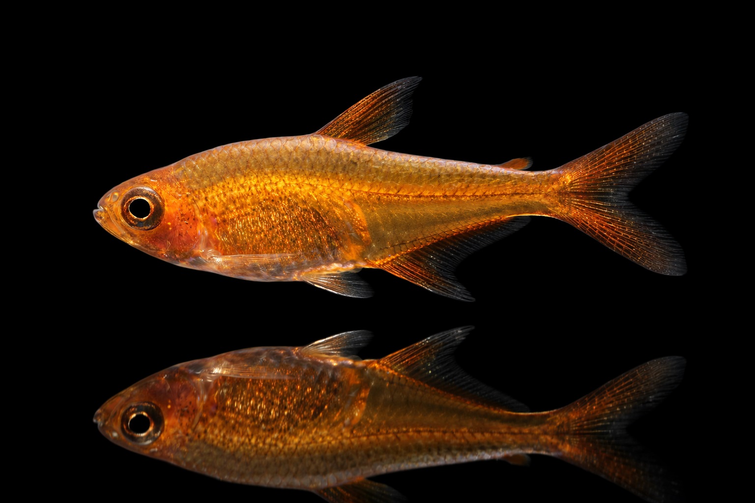 Wer einen hübschen roten und vor allem klein bleibenden Salmler als Schwarmfisch für sein Aquarium sucht, der ist mit dem Feuer Tetra oder auch Funkensalmlergenannt, sehr gut beraten. Eine intensive rötlich-orange Farbe, welche den kompletten Körper bedeckt, macht diesen etwa 3 cm langen Gruppenfisch zu einem tollen Blickfang in einem Aquarium ab 60 cm Kantenlänge.