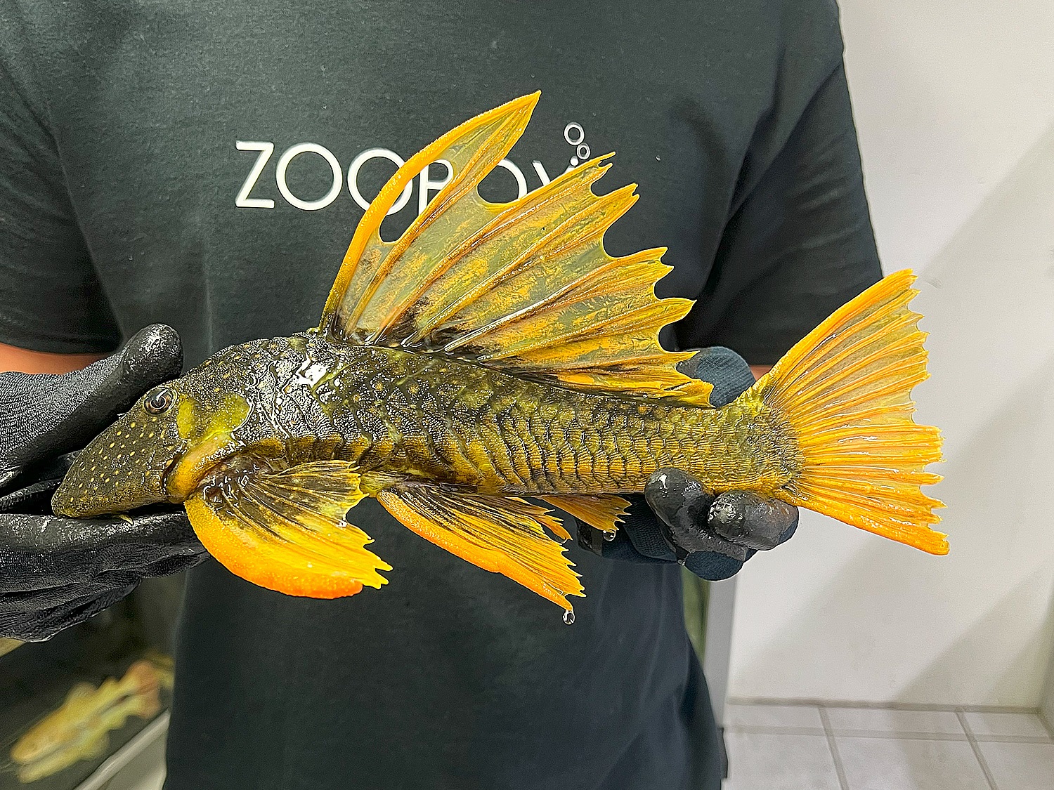 We offer this rare and visually stunning Golden Sailfin Catfish starting at a size of 30 cm using the WYSIWYG method ("What You See Is What You Get"). This means you will receive exactly the individual shown in the photos. This allows you to get a precise impression of the fish’s coloration, pattern, and body shape before purchase – especially important for such magnificent one-of-a-kind specimens!