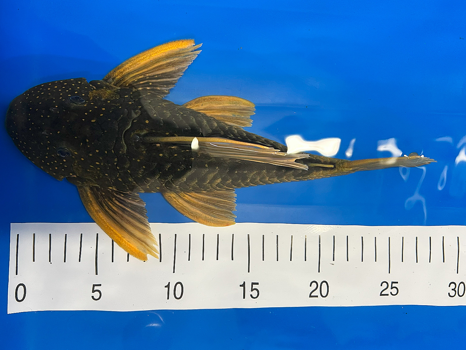 We offer this rare and visually stunning Golden Sailfin Catfish starting at a size of 30 cm using the WYSIWYG method ("What You See Is What You Get"). This means you will receive exactly the individual shown in the photos. This allows you to get a precise impression of the fish’s coloration, pattern, and body shape before purchase – especially important for such magnificent one-of-a-kind specimens!