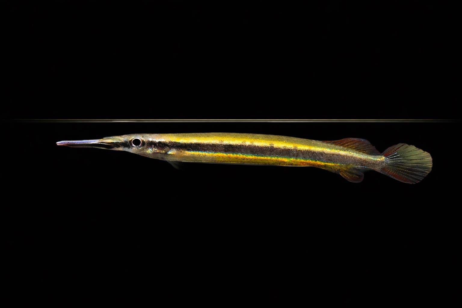 Der Goldlinien-Halbschnabelhecht (Hemirhamphodon tengah) stammt aus Asien und kommt in Indonesien auf der Insel Borneo vor. Er wird rund 6 cm groß und lebt oberflächenorientiert. Diese Zierfische besitzen eine tolle Streifenzeichnung.
