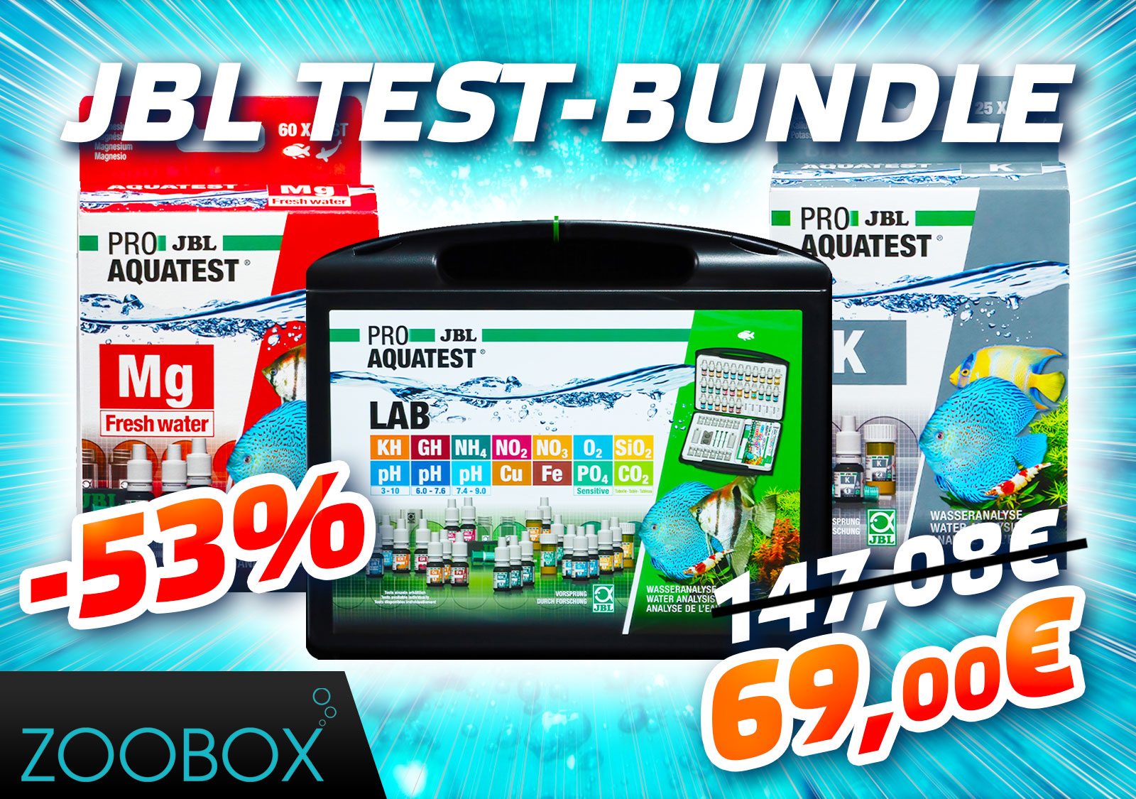 In diesem Bundle erhälst du den PROAQUATEST LAB sowie die Kalium und Magnesium Refill, die nicht in diesem Test enthalten sind zum unglaublichen Preis von 69€